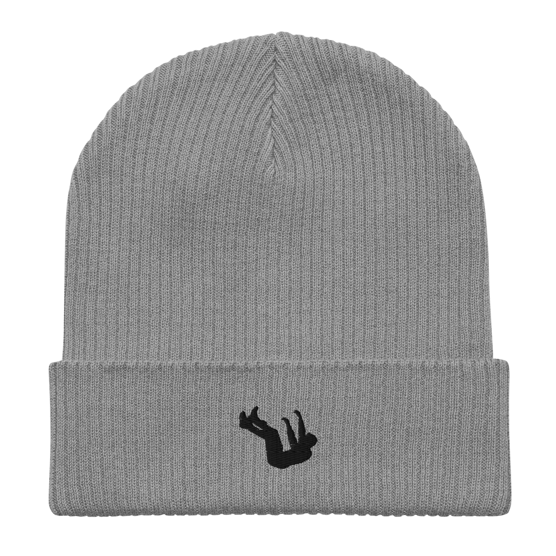 Distractions logo embroidered on the front of a gray unisex beanie.